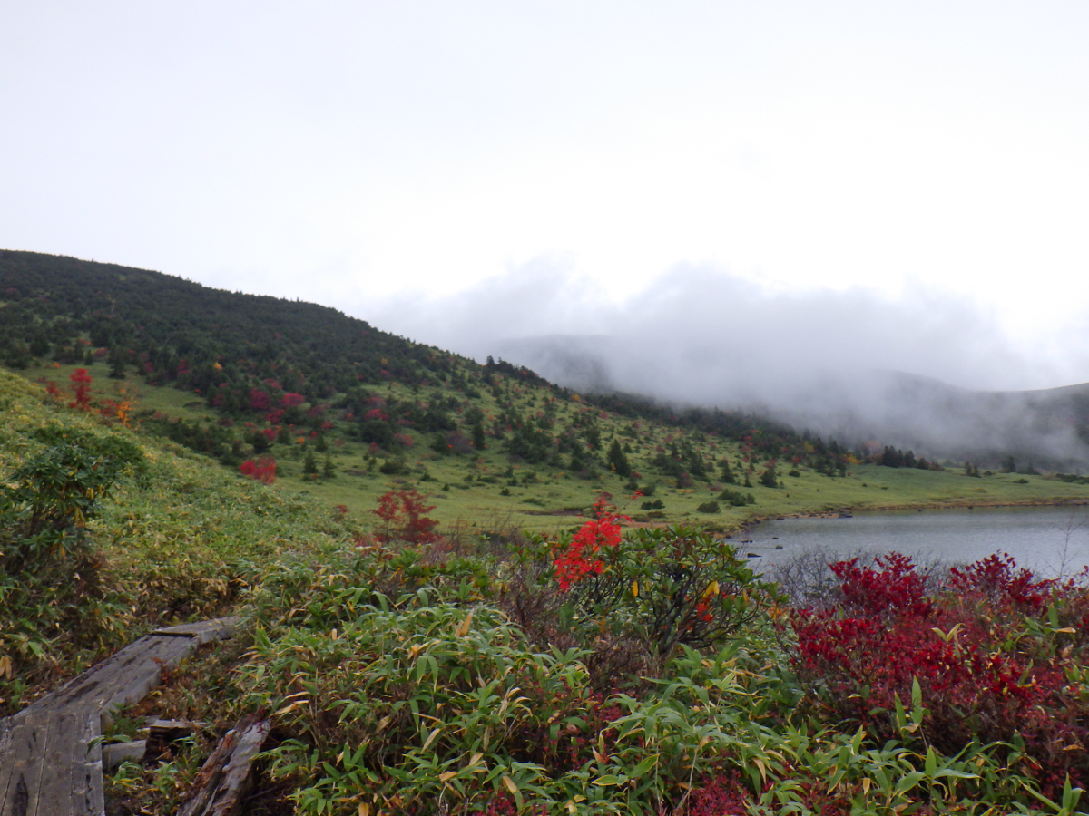 10月も半ばとなり、標高1770mの鎌沼周辺では落葉も目立つようになってきました。
