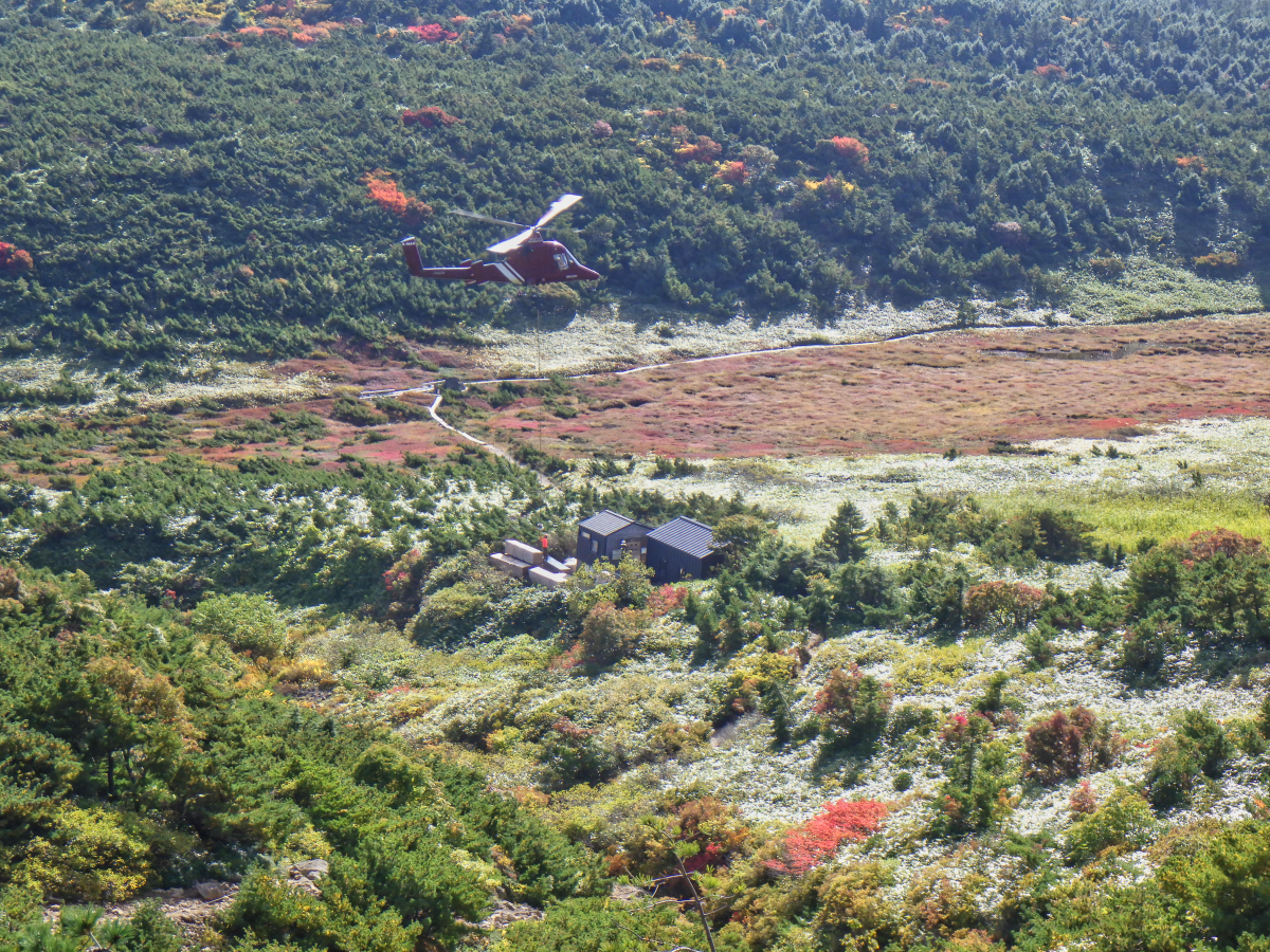 なお、改修工事中の酸ヶ平避難小屋は、まだ緊急時以外は使えません。工事自体は終わっていますが完成検査を待つばかり、という状況。ご理解ご協力をお願いします。