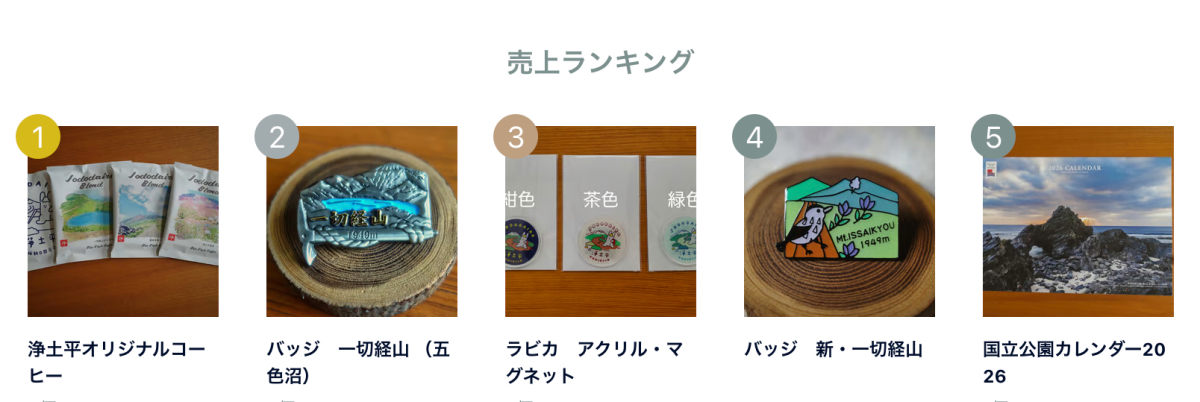 売店コーナーでは、新入荷・再入荷した商品もあれば、山バッジの一部など品切れが続いている商品もあって、入荷時期未定で申し訳ありません。
