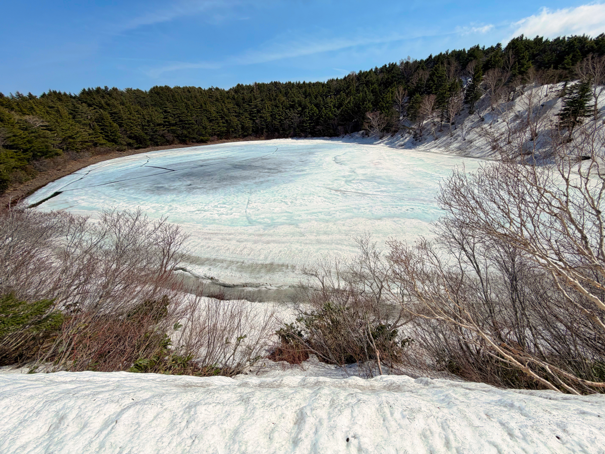 桶沼は例年よりは雪解けが進んでいますが、散策コースの大部分はまだ残雪と樹木で歩きにくい状況です。通常の散策路がどこなのか分からないと思いますので、行ったことがない方はご注意ください。